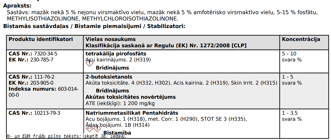 Marķējums saskaņā ar Regulu (EK) Nr. 1272/2008 [CLP]