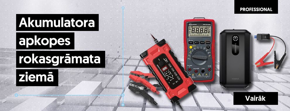 - ja tiek pamanīts, ka akumulatora spriegums ir zemāks par 12,4 V - izmantot akumulatora lādētāju;