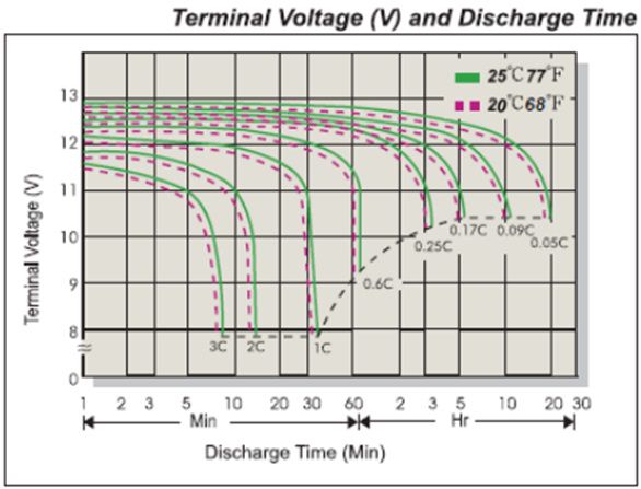 Otrajā grafikā parādīts kritiskais sprieguma līmenis, pie kura jāpārtrauc akumulatora izlāde. Iegūtās enerģijas daudzums laika vienībā ir tieši saistīts ar akumulatora temperatūru. Vienkāršākais veids, kā nedaudz uzsildīt akumulatoru, ir ieslēgt automašīnas gaismas. Pietiks ar vienu minūti. Vēl viens veids ir izņemt akumulatoru pirms aukstas nakts un uzglabāt siltā telpā, tajā pašā laikā to var uzlādēt, izmantojot lādētāju (šis veids nav piemērots augstās klases automašīnām).
