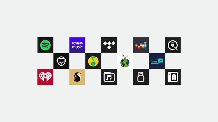 - Straumēšanas avotu atbalsts no tiešsaistes pakalpojumiem, viedierīču atmiņas, USB zibatmiņas, NAS, Bluetooth un līnijas ieejas