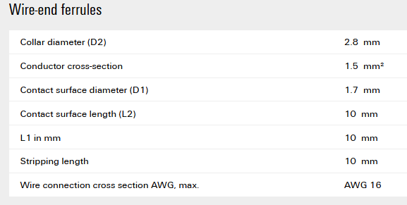 Uzgalis vadam neizolēts 1.5mm² 10mm, 0186500000 Weidmuller